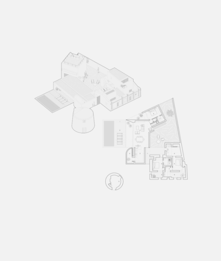 Connected to the social area is the third building, which accommodates two more suites, which also have unobstructed sea views.